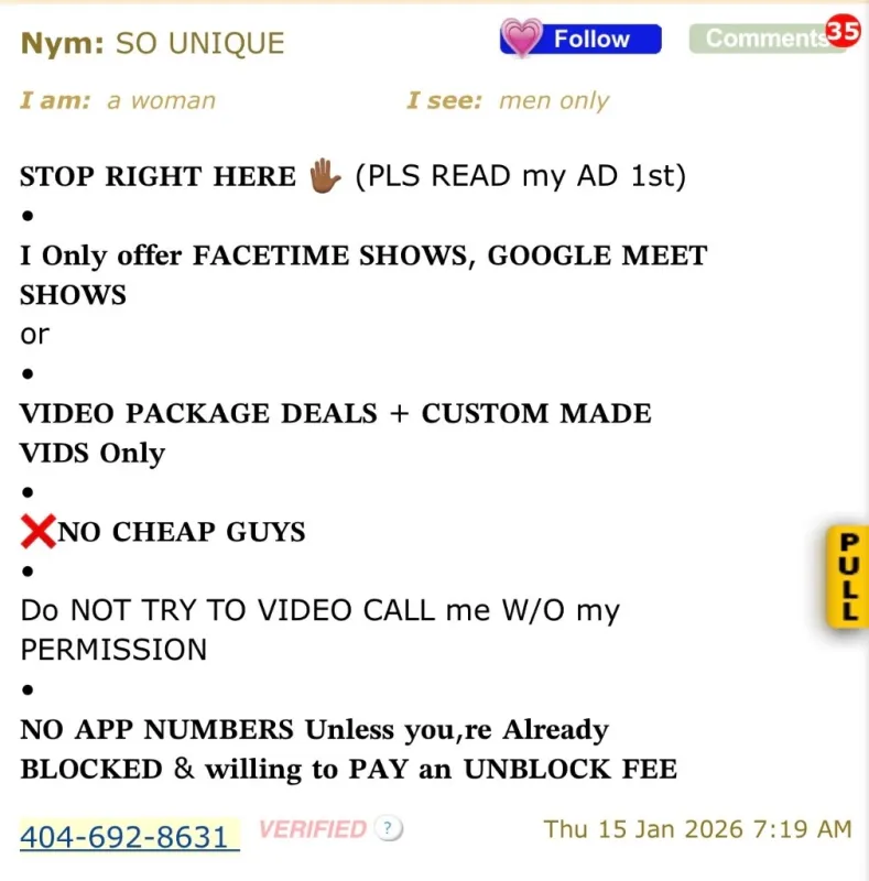 its 2026🤪 lets have sum FACETIME FUN 🤳🏽📲🍆🥜💦🤲🏽 • 🗣MY AD is for SERIOUS GENEROUS GENTLEMEN ONLY IF THAT Aint U DONT CONTACT ME • 💢NO MATTER WHERE my AD is Im Always FACETIME READY 24/7💢 • 👀NO APP Numbers Unless you're ALREADY BLOCKED an willing to Pay my UNBLOCK FEE • ✅ I Only Offer⬇ FACETIME or GOOGLE MEET SHOWS📲 + VIDEO PACKAGE DEALS💲🎥 • • ❌NO WEIRDOS.....NO CHEAPOs.....❌NO MENU COLLECTORS • SIT & Get ur HanDs WET💦 w/ UNIQUE thee FACETIME FREAK